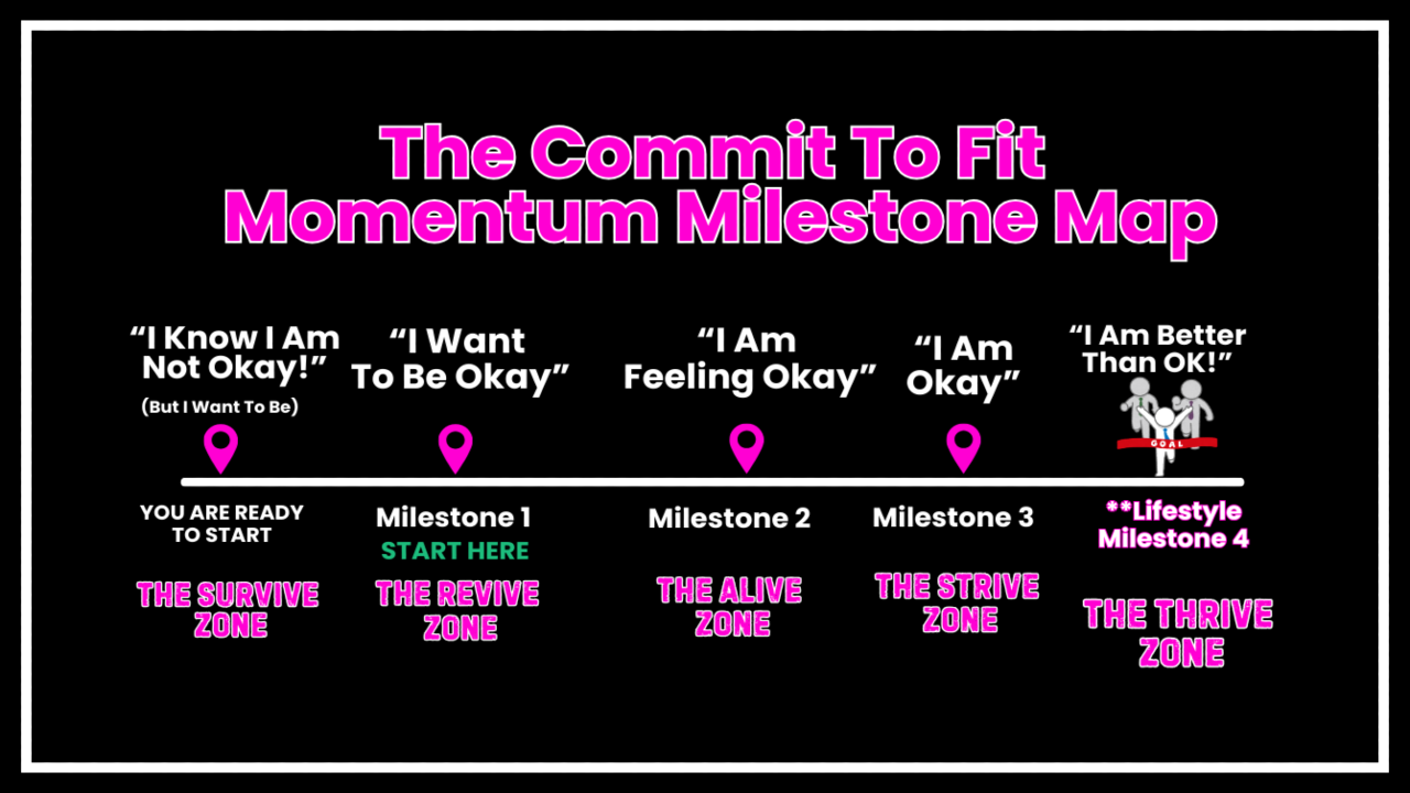 The Internal Battle Plan is designed to help you move from feeling "I Know I Am Not Okay" in the Survive Zone to becoming "Better Than Okay" in the Thrive Zone. Each Momentum Milestone focuses on strengthening your mindset, building resilience, and overcoming Weight Warfare.